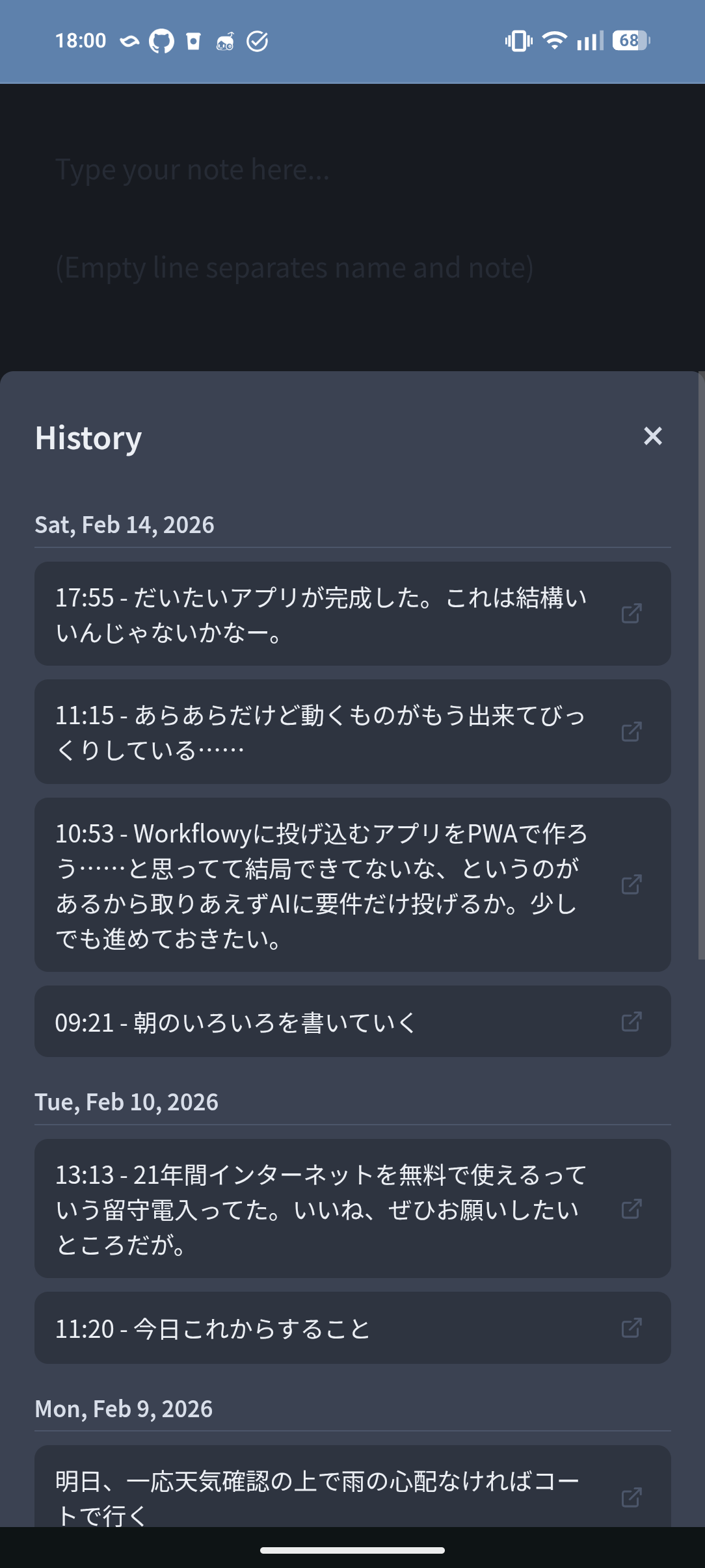 Workflowyにすばやくメモを書き入れるためのアプリをPWAで作った